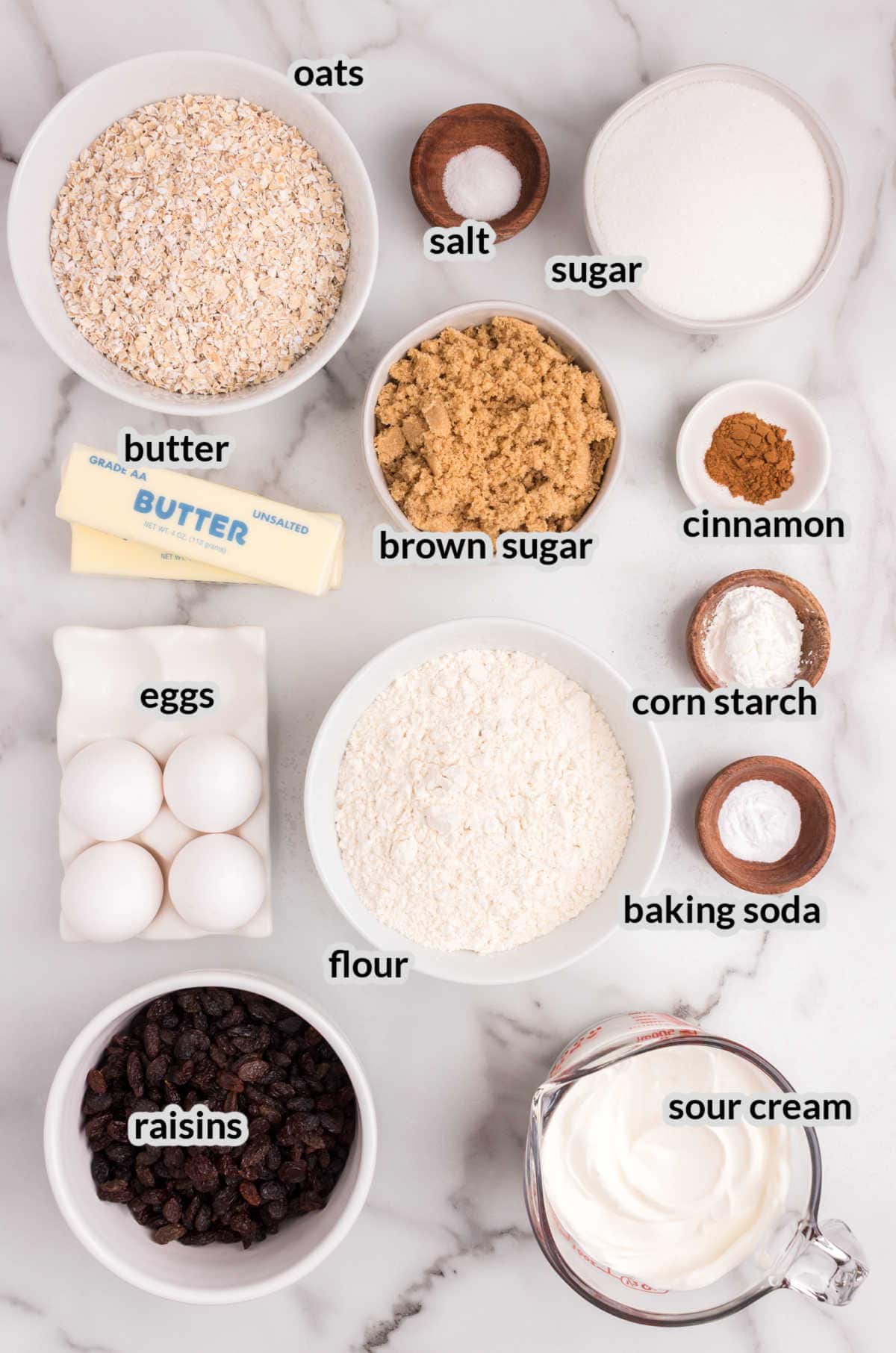- Salt – Balances the sweetness of the sour cream raisin bars.